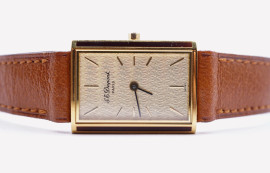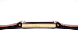 Orologio Dupont di forma rettangolare, placcato oro e lacca di Cina, serie numerica 73BA157, bracciale e fibbia originali, cassa cm 3x2,2, lunghezza cm 20 (meccanismo da revisionare)