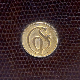 Orologio Slogan portacipria in metallo dorato, diametro cm 8,5 (meccanismo da revisionare)