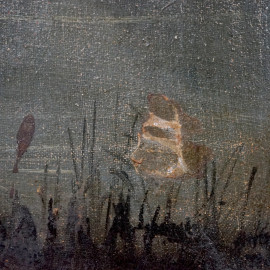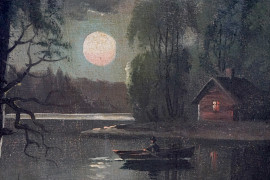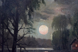 Paesaggio al chiaro di luna, olio su tela, firmato e datato in basso a sinistra, cm 42x32, entro cornice