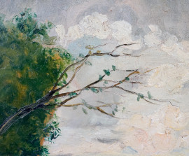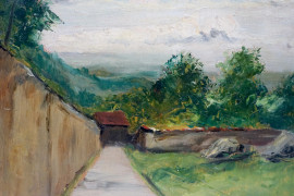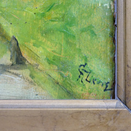 Paesaggio con viale, olio su tavola, inizio XX secolo, firmato, cm 32x23, entro cornice