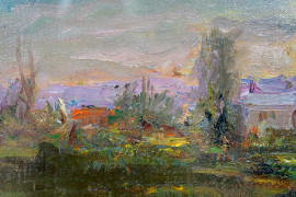 Paesaggio, olio su cartone, cm 20x24, firmato, entro cornice. (Difetti)