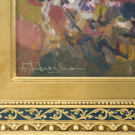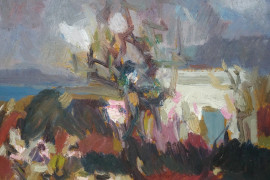 Paesaggio, olio su masonite, XX secolo, firmato in basso a sinistra, cm 24,5x35, entro cornice
