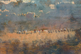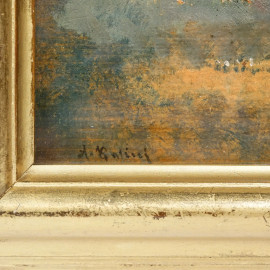 Paesaggio, olio su tavola, cm 10,5x20, firmato, entro cornice. (Difetti)