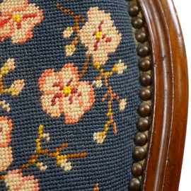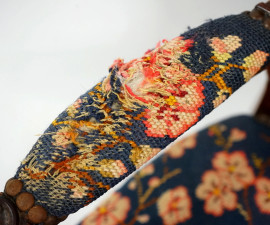 Poltrona in noce, con schienale e seduta imbottiti, gambe anteriori mosse, fine sec. XIX, cm 98x57x54 (difetti)
