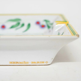 Posacenere Hermes, in porcellana con decorazione raffigurante tucani, cm 4x19,5x16. (Difetti)