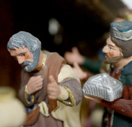 Presepe in terracotta policroma e legno, XX secolo, cm 21x30,5x18