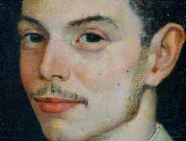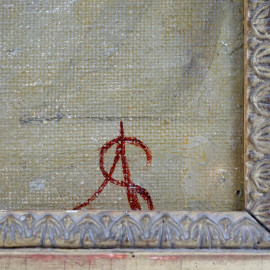 Ritratto di giovane, olio su tela riportanto su tavola, siglato in basso a destra A.S., cm 26,5x16,5, entro cornice