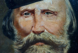 Ritratto di Giuseppe Garibaldi, olio su tavola, siglato in basso a sinistra, XIX-XX secolo, cm 29x22, entro cornice