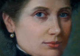 Ritratto di nobildonna, pastello su carta in assetto ovale, XIX-XX secolo, cm 53x40, entro cornice, (difetti)