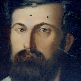 Ritratto d'uomo con barba, olio su tela, XIX-XX secolo, cm 63,5x45,5, entro cornice (difetti, cadute di colore)