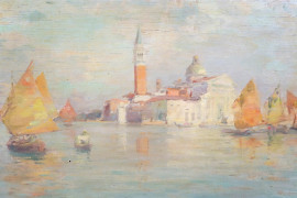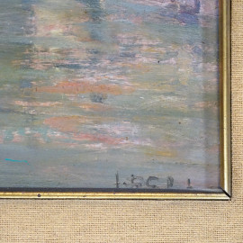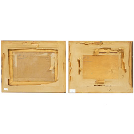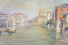 Coppia di vedute del Canal Grande (Venezia), olio su compensato e olio su cartone, firmati in basso a destra, entro cornice
