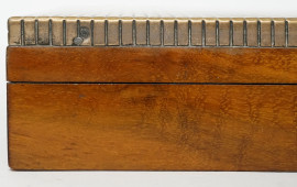 Scatola portasigari in legno e argento, sec. XX, cm 4,5x18,5x13,5. (Difetti)