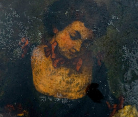 Scena galante, cromolitografia, XX secolo, cm 34x28, entro cornice (difetti)