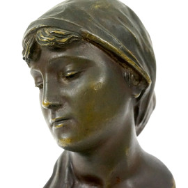 Scultura in bronzo rappresentante una testa di fanciulla, firmato E. Rossi, altezza cm 26