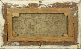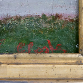 Scuola italiana del XIX secolo, Paesaggio al tramonto, olio su tela, cm 20x40, entro cornice
