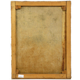 Scuola italiana del XVIII secolo, Galli e pulcini, olio su tela, cm 81,5x63 (difetti)