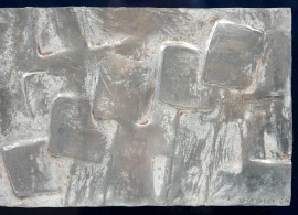 Senza titolo, lastra in metallo argentato, firmato e datato in basso a destra L. Guarini 64, cm 12,5x56, entro cornice