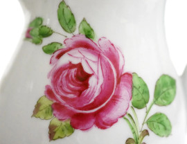 Servizio da thè in porcellana bianca con decori floreali policromi, Ungheria, XX secolo, altezza max cm 24,5. Composto da: 2 teiere, 1 lattiera e 1 zuccheriera, (lievi difetti)