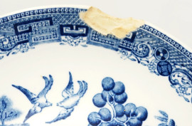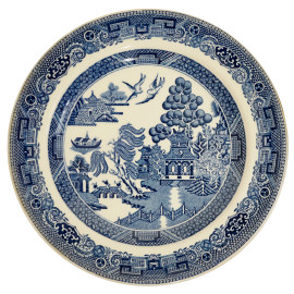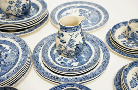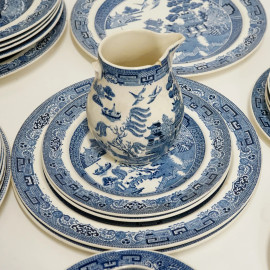 Servizio in ceramica blu e bianco, decoro "Willow", composto da