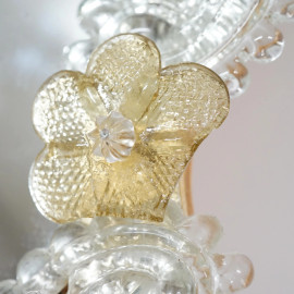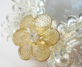 Specchietto in vetro di Murano con decori a motivi floreali nei toni del giallo, XX secolo, cm 36,5x31,5 (difetti)