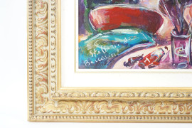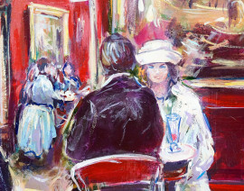 Stellario Baccellieri (1950), Caffè Greco, olio su cartone, firmato in basso a sinistra e titolato e datato "2002" in basso a destra, cm 39x50, entro cornice