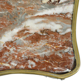 Tavolinetto Guéridon in legno con piano rettangolare in marmo e finiture in bronzo, fine sec. XIX, cm 36x49x74. (Difetti)
