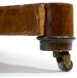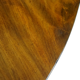 Tavolo in mogano con piano circolare, gamba centrale poggiante su base trilobata, sec. XIX, cm 72x120 (difetti)