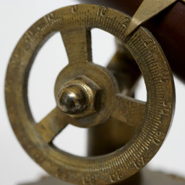 Telescopio con treppiedi in metallo dorato, legno e pelle, XX secolo, cm 45x35 (difetti)
