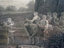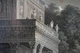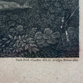 Tempio di Venere, da Claude Lorrain (1600-1682), incisore Gmelin Wilhelm Friedrich (1760-1820), acquaforte, XIX secolo, cm 62x78, entro cornice