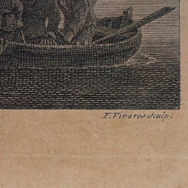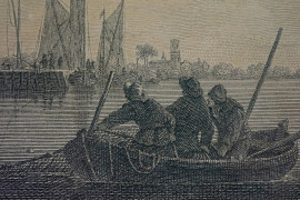 The Ducht fishrmen, da Jan van Goyen (1596-1656), incisione di Francois Vivares (1709-1780), misure comprese passepartout cm 39x49,5, entro cornice (difetti)