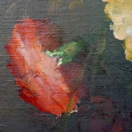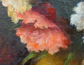 Vaso di fiori, olio su cartone telato, XX secolo, cm 29,5x40, entro cornice