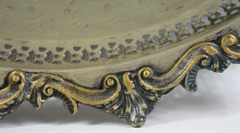 Vassoio circolare in metallo argentato, manifattura mediorientale, sec. XX, diam. cm 55,5