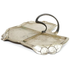 Vassoio Liberty in metallo argentato, decori a motivi floreali, cm 38x28
