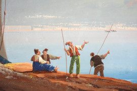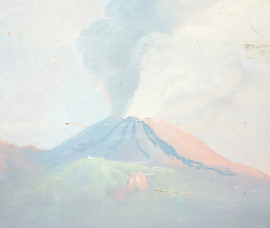 Veduta del Vesuvio, gouache su carta applicata su tavoletta, iscritto "GENE DE' 27 XBRE 1833", cm 37x48 (difetti)