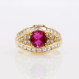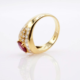 Anello in oro giallo 18 Kt con rubino 1,10 Kt e diamanti 1,20 kt, gr. 6, misura n.13.5