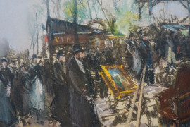 Artista francese del XX secolo, Il mercato delle pulci, pastello su cartoncino, firmato e datato in basso a sinistra 1917, cm 48x63, entro cornice