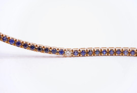 Bracciale tennis in oro rosa 18 KT con brillanti (CT 0,28) e zaffiri blu (CT 2,80), peso gr. 10,2, lunghezza cm 18