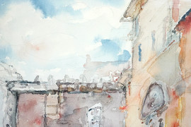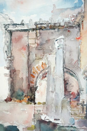 Scorcio di Roma sparita, acquerello su cartoncino, cm 33,5x24, entro cornice