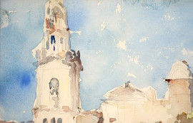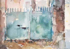 Scorcio di Roma sparita, acquerello su cartoncino, cm 34,5x27, entro cornice