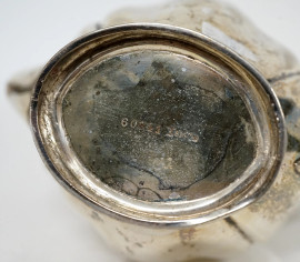 Caffettiera in argento con corpo scanalato e rifiniture decorate a cesello, Germania, inizio XX secolo, peso gr. 370, altezza cm 21