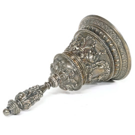 Campanella in argento cesellato a motivi e festoni vegetali, sec. XIX-XX, gr. 420, alt. cm 13, diam. cm 7,5
