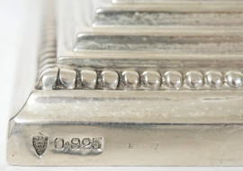 Candeliere in argento e cristallo di rocca, sec.XX, alt. cm 21,5