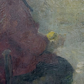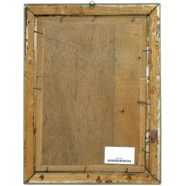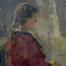 Bambina seduta, olio su tavoletta, cm 28,5x20, firmato e datato "MCMXLVII" in basso a sinistra, entro cornice