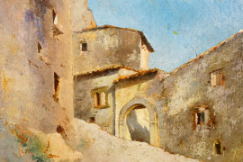 Scorcio di paese, olio su tavola, firmato e datato, cm 41x25.5, entro cornice