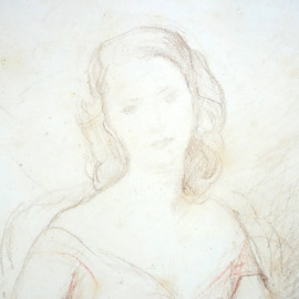 Ritratto di donna, matita su carta, cm 24x18 (incluso passepartout), firmato e datato "1947" in basso a destra, entro cornice