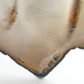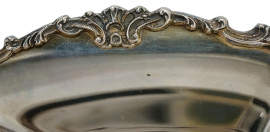 Centro tavola in argento di forma ovale, profilo mistilineo cesellato, poggiante su quattro piedini, XX secolo, peso gr. 360, cm 5,5x30x21
