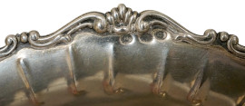 Centrotavola in argento di forma circolare con bordo mistilineo e decoro cesellato, Firenze, sec. XX, peso gr. 165, diametro cm 23