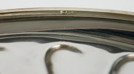 Cestino in argento traforato, cm 8.5x31x25, peso gr. 740 circa