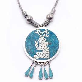 Collana in argento con ciondolo in turchese in stile precolombiano, lunghezza cm 41