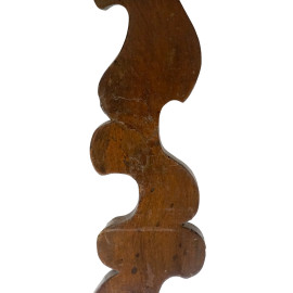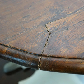 Coppia di Consolles in noce a tre gambe sagomate raccordate, congiungibili a creare un tavolo tondo, sec. XIX, cm 81x116x60, (difetti)